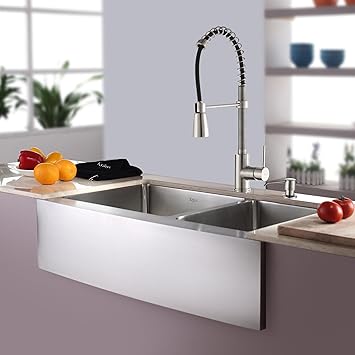 Find kraus sink from a vast selection of Bathroom Sinks. Kraus KHF200-36 36 in. Farmhouse Single Bowl Stainless Steel Kitchen Sink wit... KRAUS KHF200-30 Standart PRO 30 inch 16 Gauge Single Bowl Stainless Steel Farmhouse Kitchen Sink. The perfect combination of style and practicality, Standart PRO farmhouse sinks feature oversized bowls, wear-resistant finish, and exclusive NoiseDefend sound dampening for superior... Farmhouse sinks were first created back when there was no running water and people used to store water in a jar in front of their sink. 1. Kraus KHF203-33 33 inch Farmhouse Apron 60/40 Double Bowl 16 gauge Stainless Steel